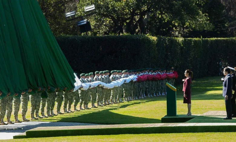 En la conmemoración del Día de la Bandera en Campo Marte, la presidenta Claudia Sheinbaum aseveró que “ya no es como antes que los gobiernos se arrodillaban ante gobiernos extranjeros o que miraban fuera como ejemplo a seguir”