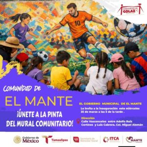 El Gobierno Municipal de El Mante 2024-2027 lanzó una invitación abierta a niñas, niños, jóvenes y familias para participar en la creación de un mural comunitario que combinará el arte urbano con la pasión por el fútbol.