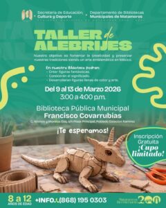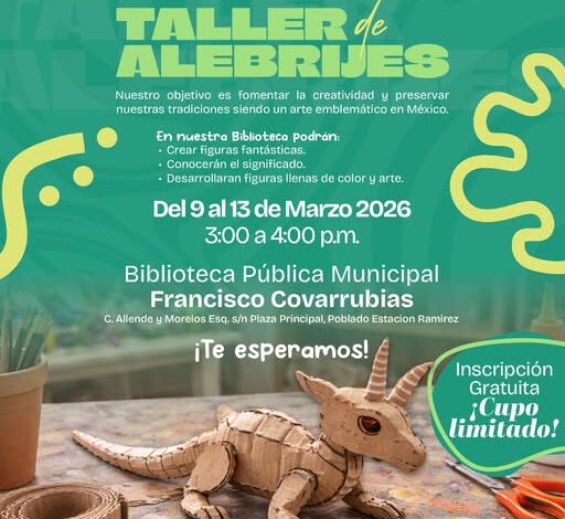 El taller se llevará a cabo en la Biblioteca Pública Municipal Francisco Covarrubias, donde las y los participantes conocerán el significado cultural de los alebrijes y tendrán la oportunidad de crear sus propias figuras fantásticas, desarrollando habilidades artísticas mientras exploran su creatividad.