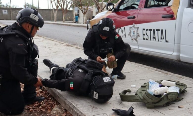Ciudad Victoria, Tamaulipas.– Conformado por 32 integrantes, entre ellos ocho mujeres, la Secretaría de Seguridad Pública de Tamaulipas (SSPT) imparte la capacitación correspondiente al décimo noveno bloque del Curso de Medicina Táctica Policial.