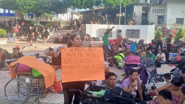 Caravana Migrante Protesta en Pijijiapan, Chiapas; Pide Permiso Migratorio para Cruzar el País