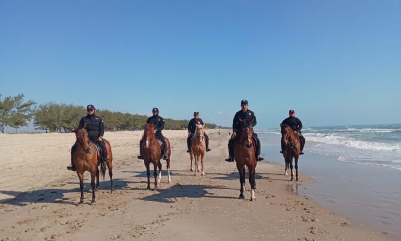 Soto la Marina, Tamaulipas.– En el marco del periodo vacacional de Semana Santa 2026, el Agrupamiento Montado de la Guardia Estatal puso en marcha un operativo especial de seguridad en la playa La Pesca, uno de los destinos turísticos más concurridos del estado.