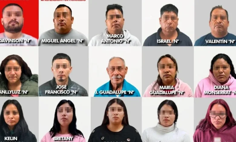 Entre los presuntos delincuentes había ocho mujeres y cinco hombres, entre los que se encuentran María Guadalupe “N”, Diana Montserrat “N”, Anlly Luz “N”, Jana “N”, J. Guadalupe “N”, Marco Antonio “N”, Valentín “N”, Israel “N”, José Francisco “N”, Kelin Johana “N”, Bretany Leticia “N”, Fátima “N” y Paola “N”.