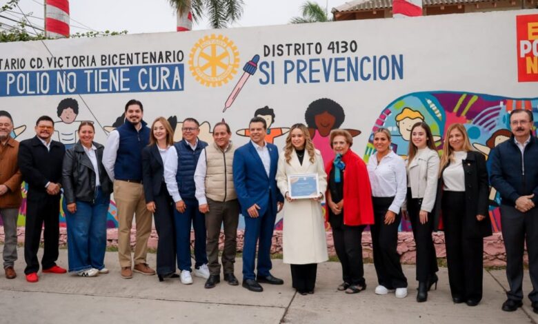 Ciudad Victoria, Tamaulipas 2 de diciembre 2025. – El DIF Victoria, encabezado por su presidenta Lucy de Gattás, presentó en sus instalaciones el mural “End Polio Now”, realizado en colaboración con el Club Rotario Ciudad Victoria Bicentenario como parte de la campaña global de sensibilización sobre la importancia de la prevención y la vacunación contra la poliomielitis.