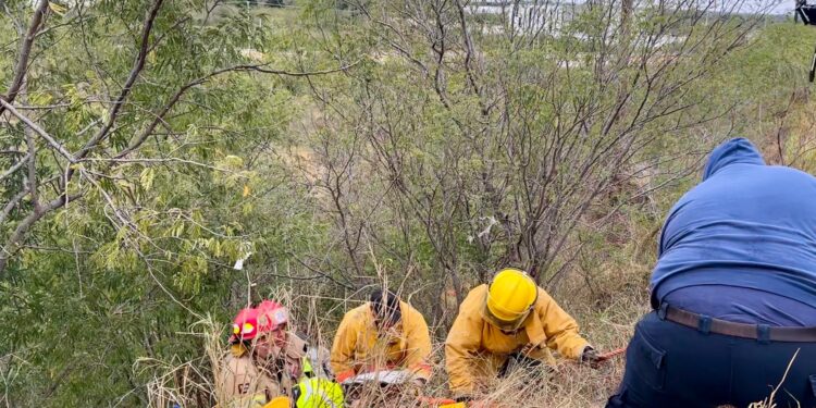 Ciudad Victoria, Tamaulipas (8 de enero de 2024).- A consecuencia presuntamente del exceso de velocidad, esta mañana dos personas resultaron lesionadas al perder el control de su automóvil, el cual después de salir del camino cayó a un barranco a un costado del Libramiento Naciones Unidas.