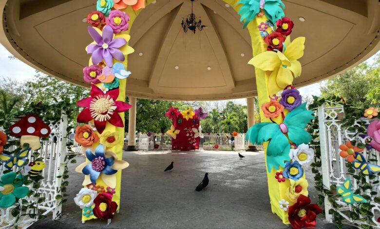 El Mante invita a disfrutar el kiosco decorado por primavera en la plaza principal