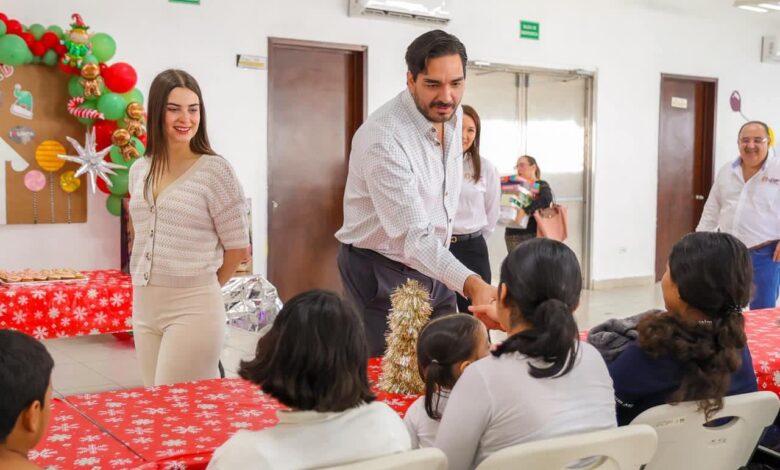 Los menores migrantes alojados en el CAMEF, fueron visitados por el Presidente Municipal Carlos Peña Ortiz y por su esposa Alejandra Yelitza Garza, Presidenta del Voluntariado DIF-Reynosa, para celebrar una convivencia navideña y entregarles regalos a cada uno de ellos.