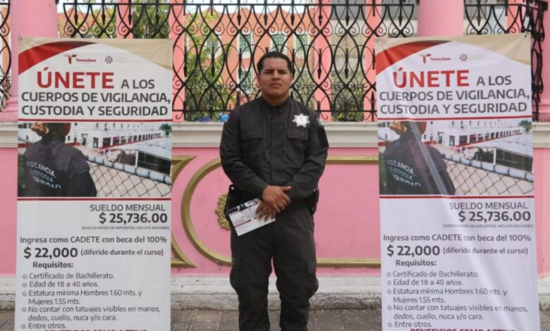 Ciudad Victoria, Tamaulipas.- En cumplimiento al compromiso de incrementar el personal de los Cuerpos de Vigilancia, Custodia y Seguridad, la Secretaría de Seguridad Pública de Tamaulipas (SSPT) lleva a cabo una campaña de reclutamiento a través de medios electrónicos y con presencia en lugares físicos.