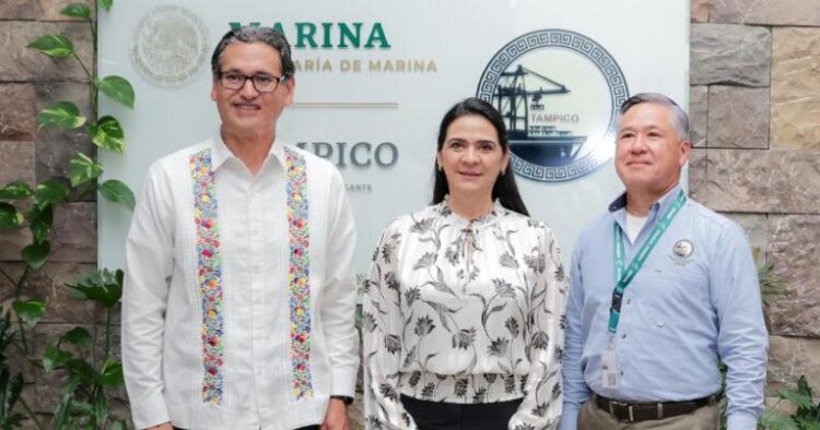 Tampico, Tamaulipas.- Con el objetivo de consolidar el desarrollo turístico de Tampico y fortalecer la seguridad en los cruces de lanchas del río Pánuco, la Presidenta Municipal, Mónica Villarreal Anaya sostuvo una reunión de trabajo con el director general de la administración del Sistema Portuario Nacional (ASIPONA), Rubén Alfonso Vargas Suárez. El encuentro, realizado en las instalaciones portuarias, contó también con la presencia del alcalde de Ciudad Madero, Erasmo González Robledo; la directora de Desarrollo Económico de Altamira, Claudia Fernández Pecero; y la gerente de Comercialización de ASIPONA, Mirna Ruby Hernández Rodríguez.