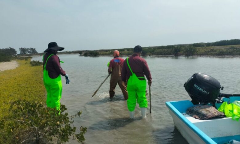 Aldama, Tamaulipas. – Con el objetivo de dar seguimiento y fortalecer el desarrollo de los proyectos de granjas de ostión en los municipios de Aldama y San Fernando, personal técnico de la Subsecretaría de Pesca y Acuacultura, encabezada por el subsecretario Jorge de Jesús Montagner Mendoza, realizó visitas de trabajo en la Barra de San Vicente y en el poblado de Carbonera Norte.