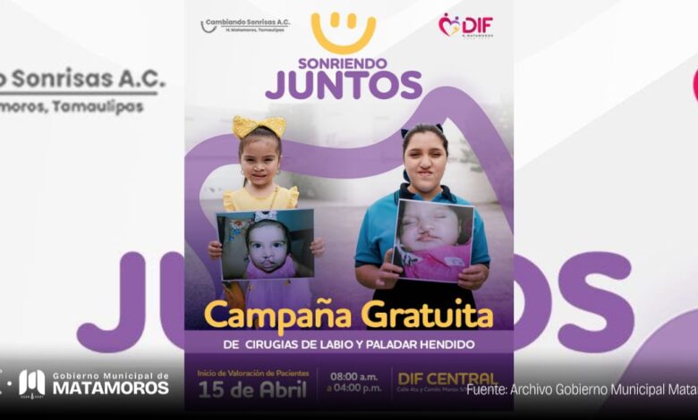 Trabajando bajo una visión de responsabilidad social y con el firme compromiso de mejorar la calidad de vida de las familias, el Sistema DIF Matamoros, presidido por la Lic. Ana Ariceaga de Granados, en coordinación con la Asociación “Cambiando Sonrisas”, da inicio a la etapa de valoración de la campaña permanente de cirugías de labio y paladar hendido “Sonriendo Juntos”, invitando a la población a beneficiarse con estas acciones.