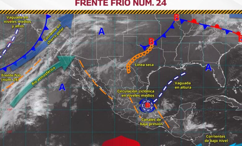 La Coordinación de Protección Civil y Bomberos del Gobierno de Reynosa le da a conocer que, el Frente Frío Número 24, que arribó a esta frontera el día sábado 27 de diciembre, provocará un descenso en la temperatura hoy domingo 28, 11° Centígrados y más de 20% de probabilidad de lluvia.