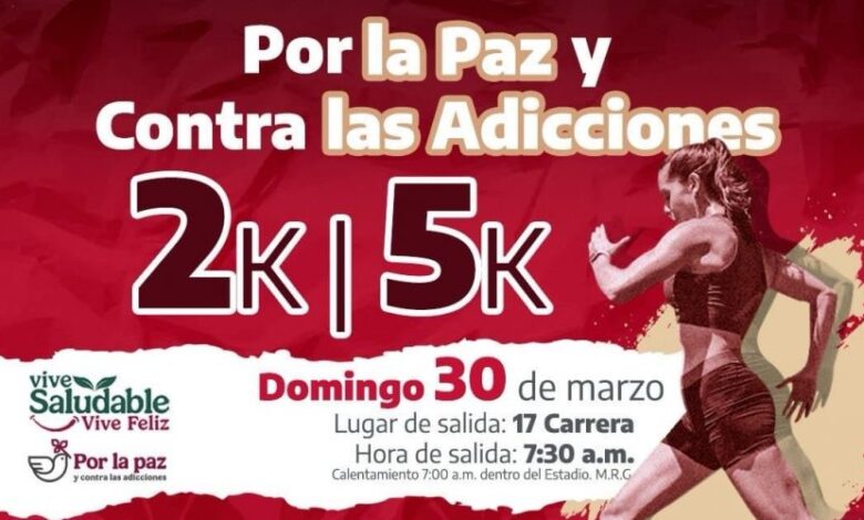 Ciudad Victoria, Tamaulipas.- La Secretaría de Educación de Tamaulipas, a través de la Subsecretaría de Educación Media Superior y Superior, invita a la comunidad a participar en la caminata y carrera 2K y 5K “Por la Paz y Contra las Adicciones”, un evento que busca fomentar la actividad física y promover una vida saludable. La actividad se realiza en colaboración con el Instituto del Deporte de Tamaulipas.
