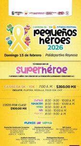 El evento se realizará el domingo 15 de febrero, a partir de las 7:00 de la mañana, en el Polideportivo Reynosa. Bajo el lema de “conviértete en un superhéroe y corre por una gran causa”, las autoridades reiteraron el llamado a sumarse a esta jornada que promueve la salud, la convivencia y el apoyo a la niñez.