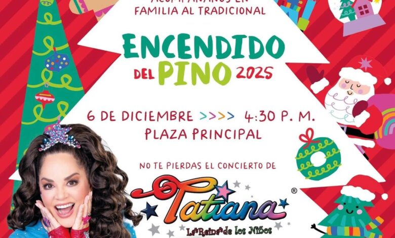Únete al Presidente Municipal Carlos Peña Ortiz en el tradicional Encendido del Pino este sábado 6 de diciembre en la plaza principal Miguel Hidalgo a partir de las 4:30 P. M. y déjate llevar por la magia de la temporada más esperada del año con el Concierto de Tatiana.