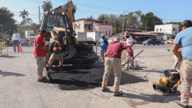 Patty Chío encabeza jornada de bacheo en el Poblado El Limón