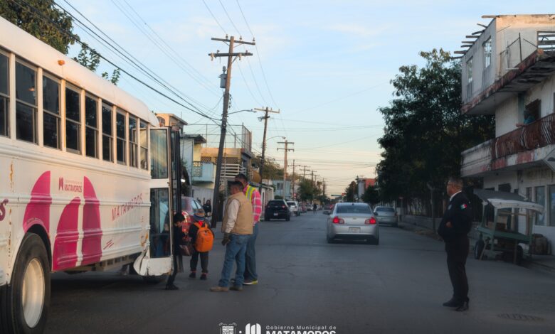 Tránsito y transporte escolar fortalecen seguridad de estudiantes en Matamoros