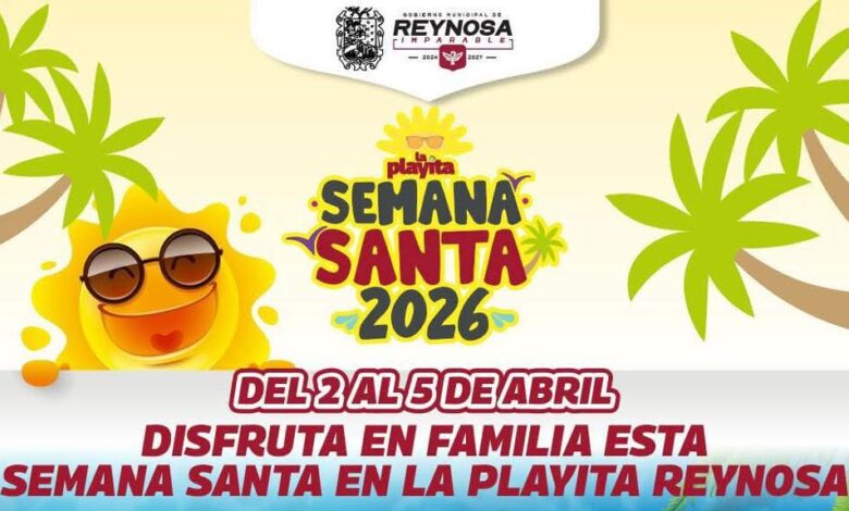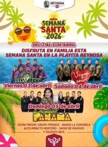 El Presidente Municipal, Carlos Peña Ortiz, invita a todos, familias de Reynosa y la región, a vivir la magia de la Semana Santa 2026 en una celebración inolvidable en la Playita, disfruta de la música de Selva Negra, El Vayvén del Amor y Tropical Panamá, los días viernes 3, sábado 4 y domingo 5 de abril.